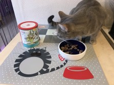 Mijn kleine Maxi (houdt van natvoer, vooral de varianten met vis) en de katers Zois, Apollon en Roco testen de Hirsch. Felina en Orpheus vinden het natvoer ook lekker. Alleen onze senior van 15 jaar wilde haar gewoontes niet veranderen.